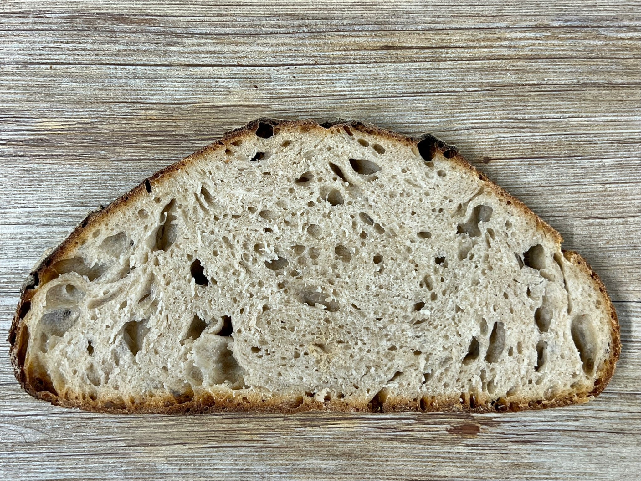 Pain 100% levain, à la farine de blé et seigle bio (moulin de la famille Rytz à Biberen, Fribourg).